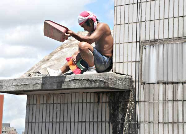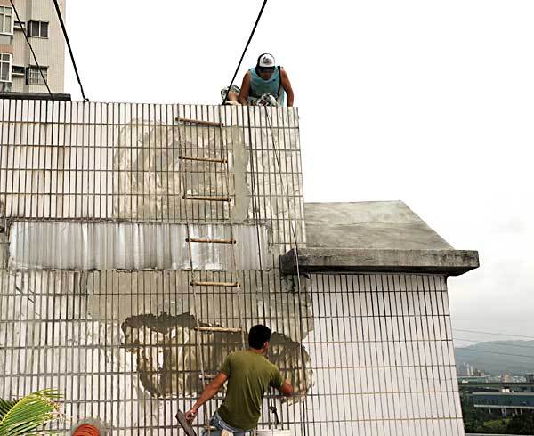 新北水泥攪伴填補地面加舖鐵絲網可強化屋頂防水結構