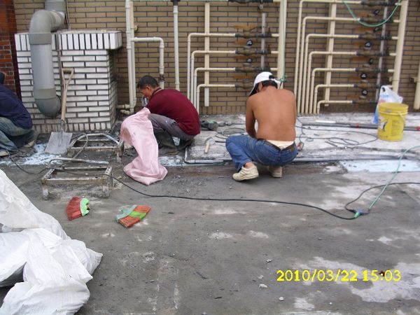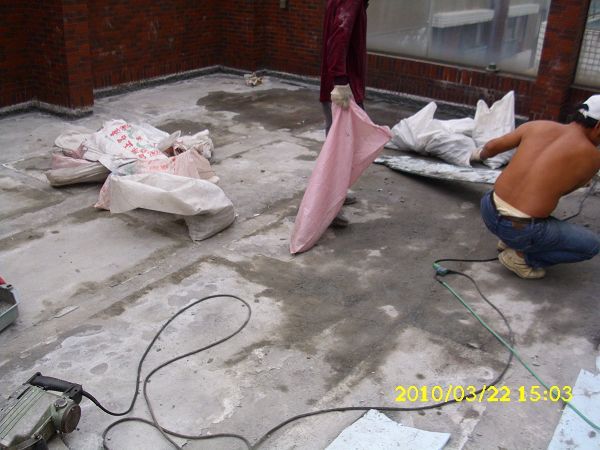 新北水泥攪伴填補地面加舖鐵絲網可強化屋頂防水結構