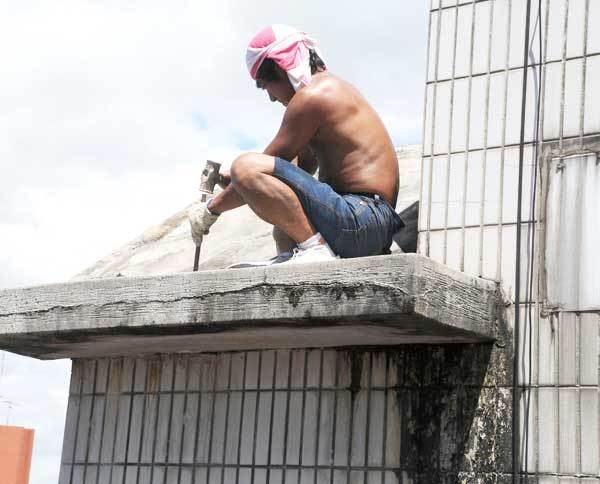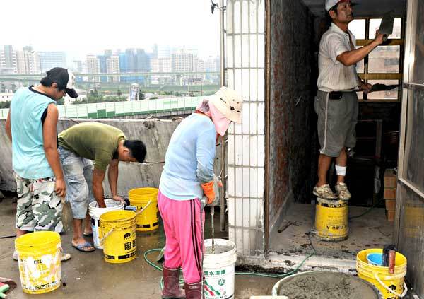 新北水泥攪伴填補地面加舖鐵絲網可強化屋頂防水結構