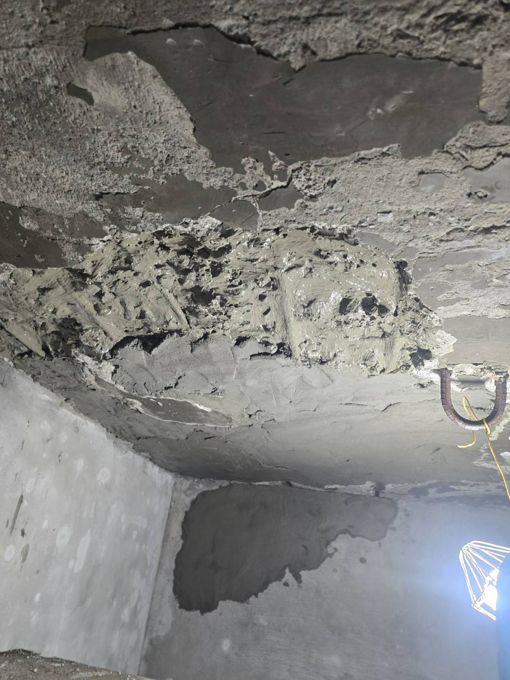本案為電梯機房天花板水泥剝落情形,現場可見局部結構鬆動並有掉落風險,施工前先進行安全評估與掉落範圍確認,並設置防護措施避免二次損害,隨後進行鬆動水泥清除與基層整理,再施作結構補強與防護塗層,提升整體穩定性與耐久度,同時確保機房設備安全運作。